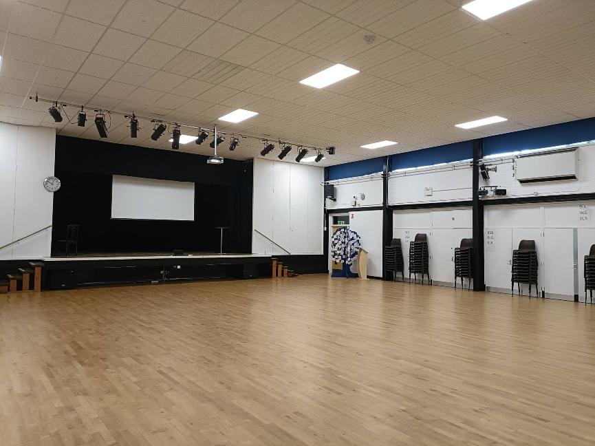 View from the stage, door to reception top right.