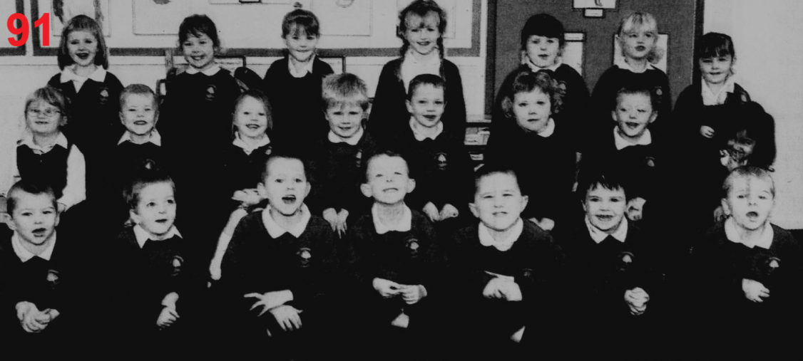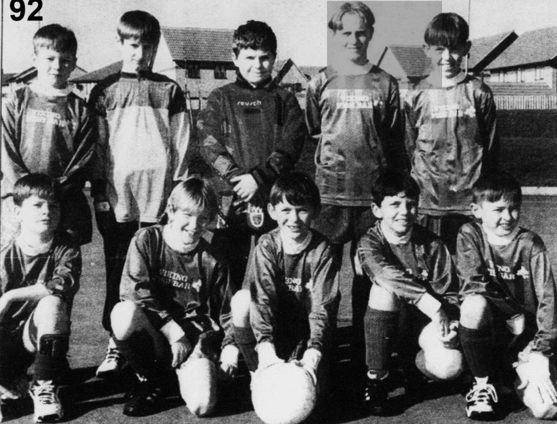 Back row Mr Derbyshire, Billy Gallagher, Bobbie Davies, Jason Horbatowska, Colin Gillan, Mark Burrow, Stephen Slater, Darren Thoirs Stuart McKay Miss Gunn